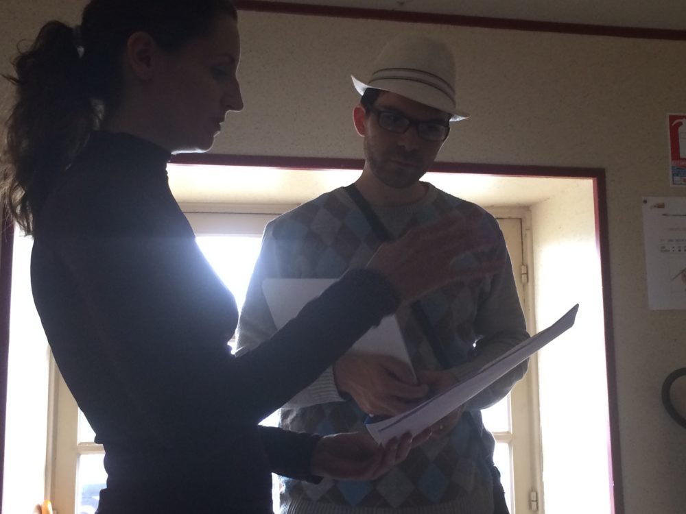 Figuring out how to properly strangle someone on screen (here our lovely composer Xavier doing a cameo) - "Purgatoire" Season 2